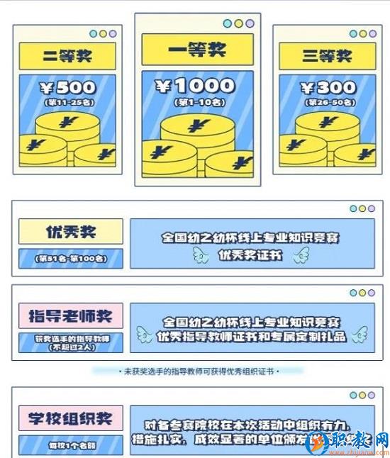 大赛设立专属“幼Young新势力”奖学金,为取得优秀成绩的同学们提供专属奖励,奖项设置如下: