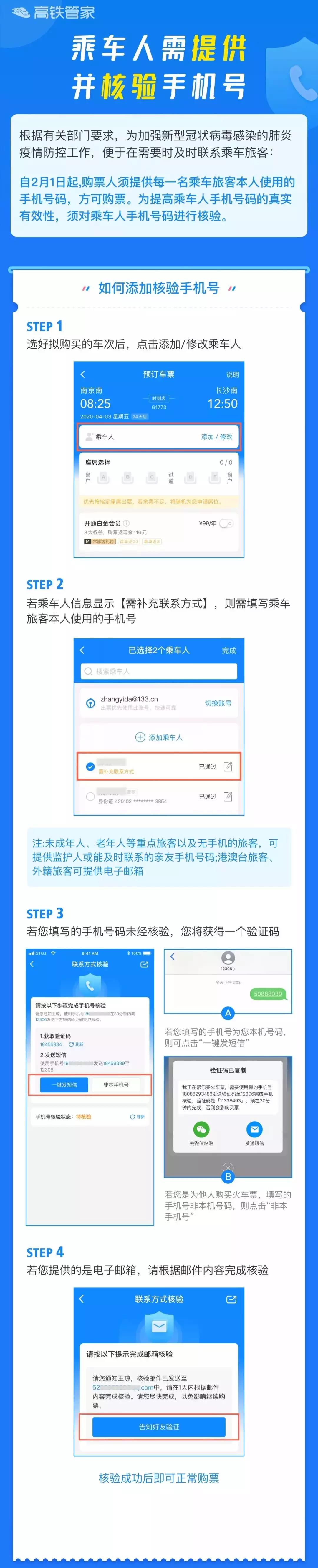 购票前请先补充您的乘车人信息。自2月1日起,购票人须提供每一名乘车旅客本人使用的手机号码,方可购票。