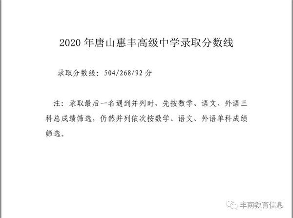 2020年丰南一中、惠丰高中录取分数线公布!