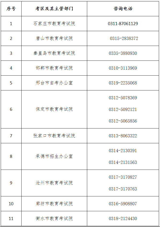 十、各考区咨询电话(工作日上午9:00-11:30,下午14:00-17:00)