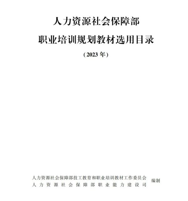 根据《“十四五”职业技能培训规划》要求, 为引领和规范职业培训教材选用与使用工作, 人力资源社会保障部技工教育和职业培训教材工作委员会办公室精选近年来依据国家职业技能标准、职业培训课程规范开发的, 经审定合格的职业培训教材和数字资源, 汇编成《人力资源社会保障部职业培训规划教材选用目录(2023 年) 》(以下简称《目录》), 供企业、职业院校(含技工院校)、培训机构在开展各类职业培训时选用。