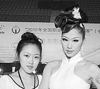 张精是个热爱形象设计的女生,凭借娴熟的技艺和手法,今年24岁的她曾分别获得2011年全国职业院校技能大赛(以下简称“国赛”)晚宴化妆发型设计造型,和2012年国赛新娘化妆盘发造型一等奖,是名副其实的“双料王”冠军。