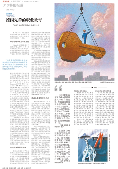 2013年8月19日《新京报》教育周刊报道了德国职业教育的经验。